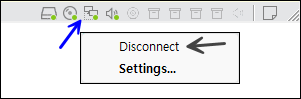 해당 화면에서 우선 네트워크(Network) 연결을 오프라인 처리하여 인터넷 통신을 하지 못하도록 하기 위해서는 VMware 하단의 "Network Adapter" 아이콘을 클릭하여 "Disconnect"를 선택합니다. 참고로 가상 환경이 아닌 실제 PC 환경에서는 일시적으로 랜(LAN)선을 PC 장치에서 해제를 하시면 됩니다.