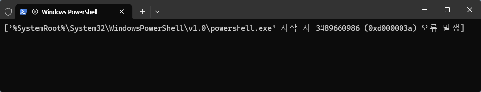 2025년 하반기에 출시 예정인 Windows 11 25H2 버전을 사전에 체험할 수 있는 Insider 프로그램을 통해 배포된 버전을 설치한 후 Windows PowerShell 프로그램 실행 시 "[’%SystemRoot%\System32\WindowsPowerShell\v1.0\powershell.exe' 시작 시 3489660986 (0xd000003a) 오류 발생]" 메시지를 경험할 수 있습니다.