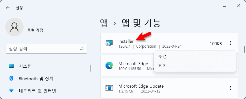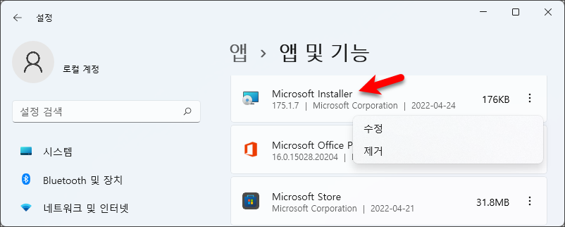 1차적으로 Magniber 랜섬웨어 감염 이후 자동 다운로드된 .msi 파일을 찾아서 삭제하고 컴퓨터 포맷을 하지 않고 사용할 경우 "Microsoft Installer" 앱을 나중에 발견하여 수정 또는 제거를 진행할 경우 다음과 같은 동작이 이루어질 수 있습니다.