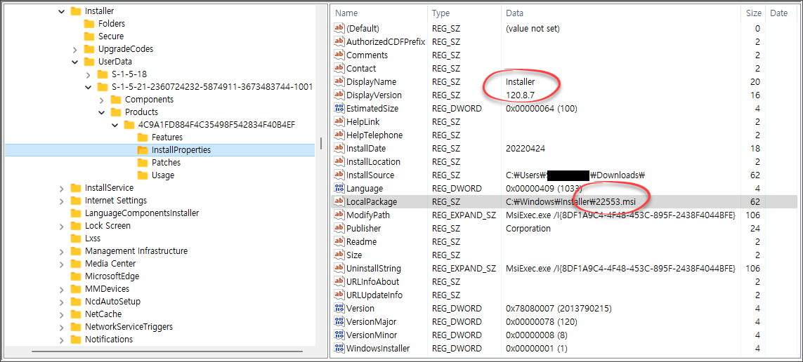 - LocalPackage = C:\Windows\Installer\22553.msi
