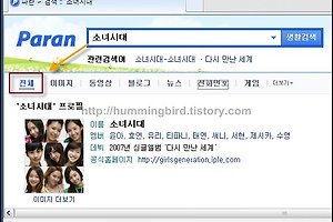 언제부터인지 장담할 수 없지만 Microsoft Internet Explorer 8 버전(현재 RC 버전)을 설치한 후 국내 포털 사이트 파란(Paran) 서비스를 제대로 이용하지 못하는 현상을 겪을 수 있습니다. 처음에는 이전에 사용하던 WebMa 제품으로 인한 문제로 생각하거나 개인적인 환경에 의한 문제일수도 있지만 현재의 검색과 관련한 문제를 기록에 남겨야 할 것 같아서 적어봅니다. 예를 들어 파란 사이트 메인에서 검색어 [소녀시대]를 검색하여 나온 초기 결과 화면을 통해 파란 서비스의 문제를 확인해 보겠습니다. 해당 검색어와 관련된 서비스는 이미지, 동영상, 블로그, 뉴스, 전화번호, 게임 등의 카테고리로 세분화하여 검색을 나눌 수 있습니다. 그런데 위와 같이 마우스를 이미지, 동영상, 블로그..