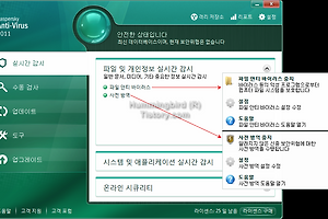 러시아 보안 업체 Kaspersky Lab ZAO 에서 제공하는 유료 보안 제품 Kaspersky Anti-Virus 2011 제품의 실시간 감시(파일 및 개인 정보, 시스템 및 애플리케이션, 온라인 시큐리티) 기능에 대하여 환경 설정 부분과 함께 살펴보도록 하겠습니다. 참고로 차후 Kaspersky Anti-Virus 2011 제품의 실시간 감시와 관련된 동작에 대해 실제 사례를 통해 확인해 보도록 하겠으며, 여기에서는 환경 설정을 중심으로 다루도록 하겠습니다. 1. 파일 및 개인 정보 실시간 감시 파일 및 개인 정보 실시간 감시는 일반 문서, 미디어, 기타 중요한 정보와 관련된 항목을 실시간 감시를 통해 보안 위협으로부터 보호를 해주는 기능입니다. 해당 항목에서는 파일 안티 바이러스와 사전 방역 구성..
