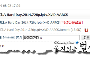 토렌트(Torrent)와 같은 파일 공유 서비스를 이용하여 드라마, 영화 파일을 다운로드하는 경우 동영상 파일과 함께 동봉된 샘플 동영상처럼 구성된 악성 파일을 통해 XtremeRAT 백도어(Backdoor)를 감염시키는 사례에 대해 살펴보도록 하겠습니다. 대표적인 유포 사례로 토렌트(Torrent) 공유 사이트에 게시된 "끝까지간다.A Hard Day.2014.720p.iptv.XviD AARCS" 파일을 이용하여 영화 파일을 다운로드를 시도해 보았습니다. 다운로드된 시드(Seed) 파일을 통해 MP4 동영상 파일(657MB)과 샘플 동영상(9.65MB)이 포함되어 있는 것을 알 수 있습니다. 동영상 파일 다운로드가 완료되는 시점에서 AhnLab V3 365 Clinic 보안 제품에서 샘플 동영상 파일..